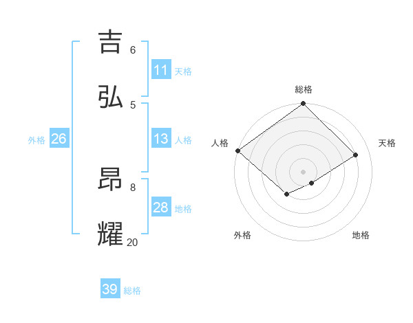 吉弘 昂耀さんの総格は39画の5点!
