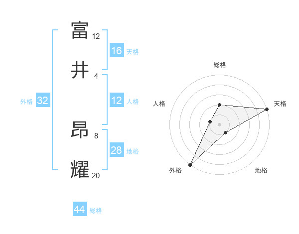 富井 昂耀さんの総格は44画の2点!