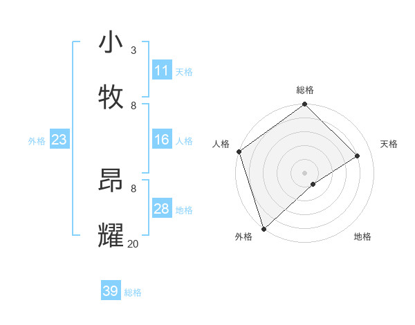 小牧 昂耀さんの総格は39画の5点!