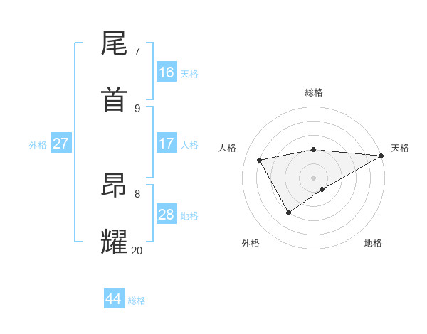 尾首 昂耀さんの天格は16画の5点!