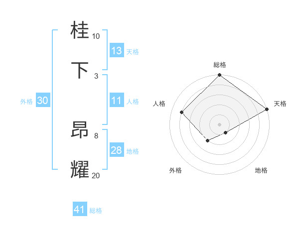 桂下 昂耀さんの総格は41画の5点!