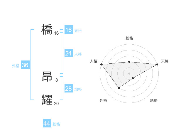 橋 昂耀さんの総格は44画の2点!