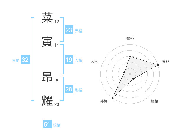 菜寅 昂耀さんを姓名の画数から五運を鑑定