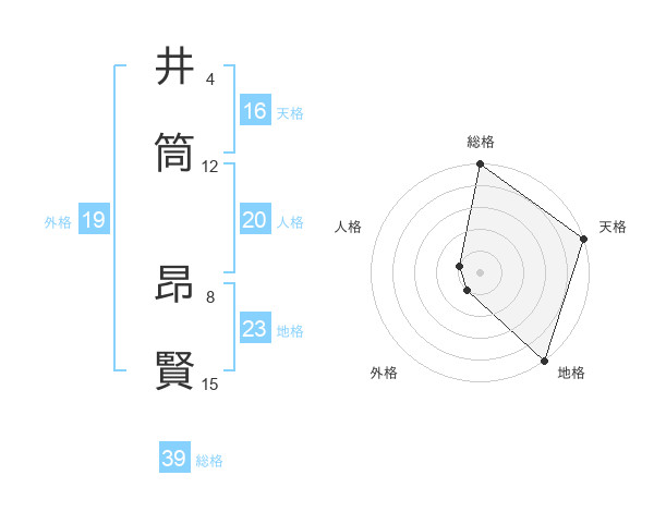 井筒 昂賢さんの総格は39画の5点!