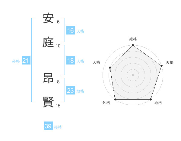 安庭 昂賢さんの天格は16画の5点!