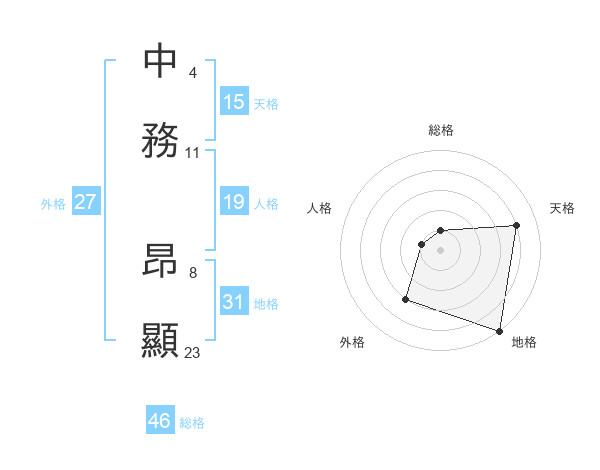 中務 昂顯さんの地格は31画の5点!