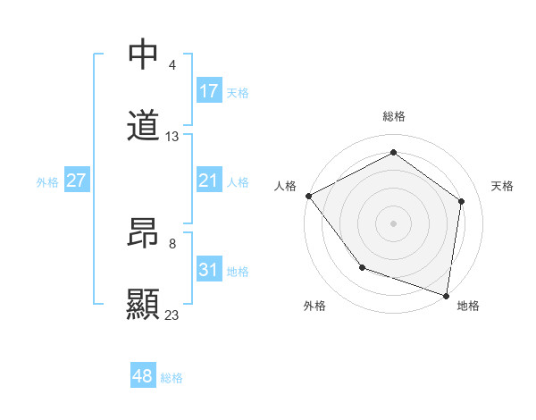 中道 昂顯さんを姓名の画数から五運を鑑定