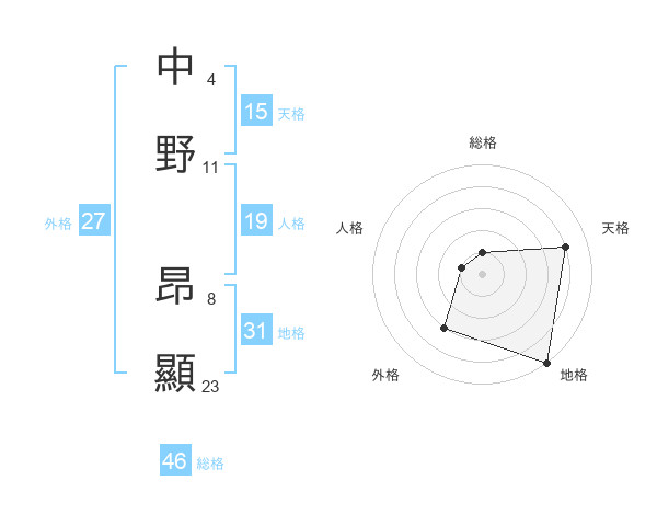 中野 昂顯さんを姓名の画数から五運を鑑定