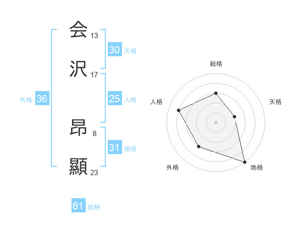 会沢 昂顯さんの天格は30画の2点!