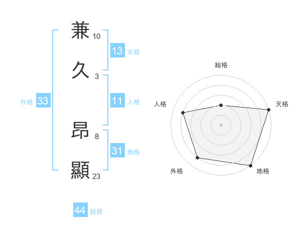 兼久 昂顯さんの総格は44画の2点!