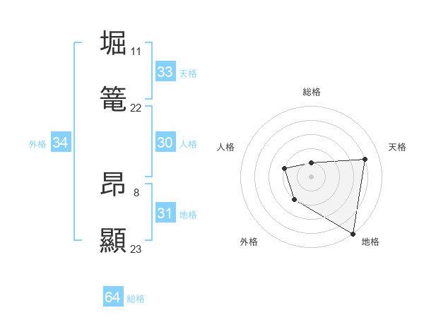 堀篭 昂顯さんの総格は64画の1点!