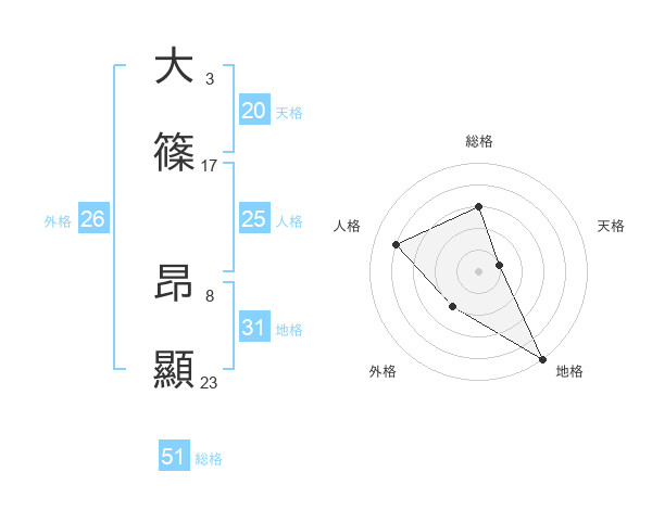 大篠 昂顯さんを姓名の画数から五運を鑑定