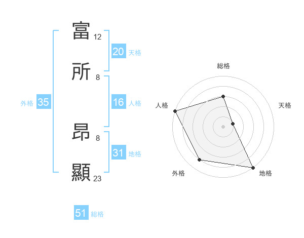 富所 昂顯さんを姓名の画数から五運を鑑定