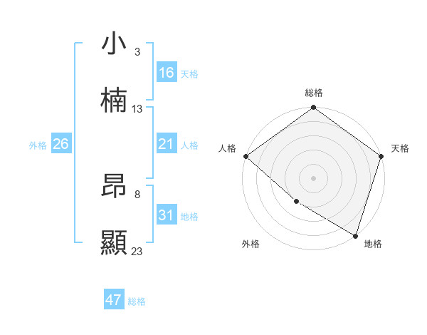 小楠 昂顯さんの総格は47画の5点!