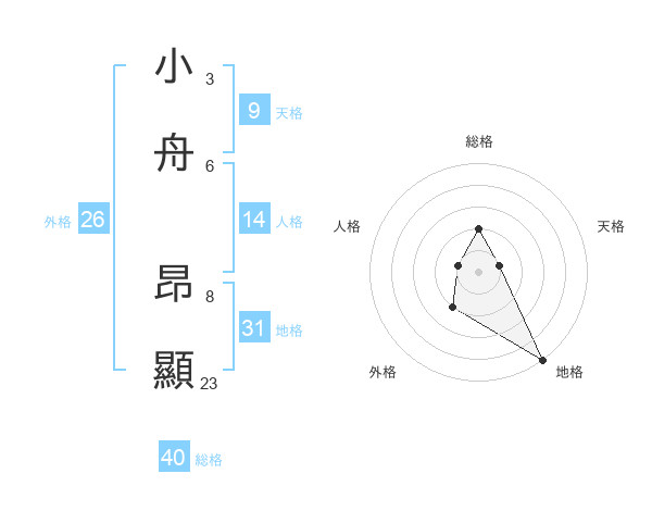 小舟 昂顯さんの総格は40画の2点!