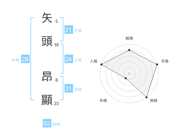 矢頭 昂顯さんの総格は52画の4点!