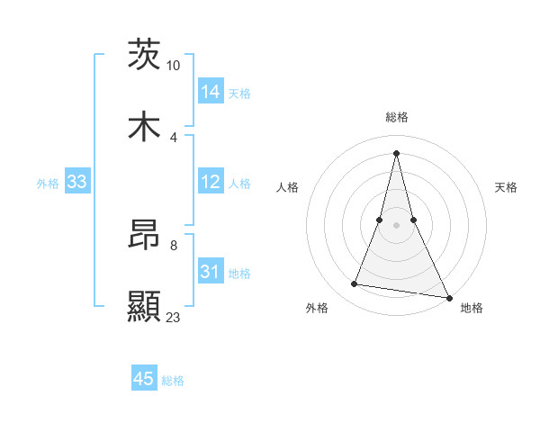 茨木 昂顯さんの総格は45画の4点!