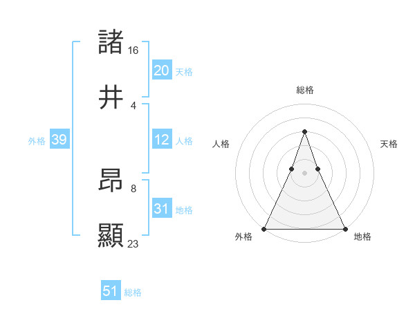諸井 昂顯さんの外格は39画の5点!