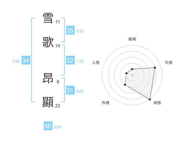 雪歌 昂顯さんを姓名の画数から五運を鑑定