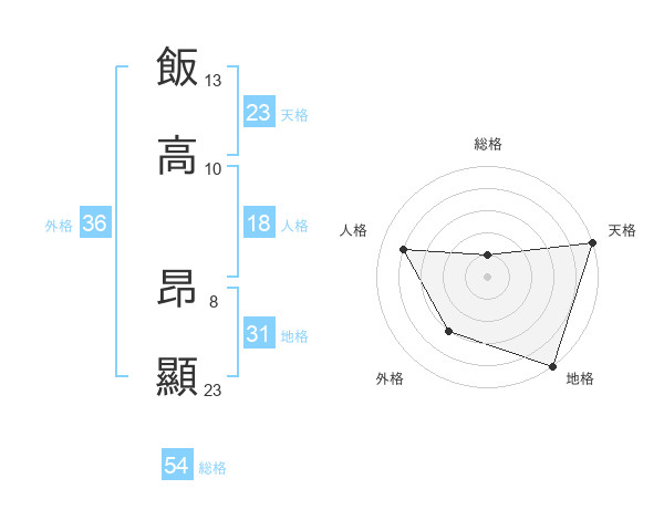 飯高 昂顯さんの総格は54画の1点!