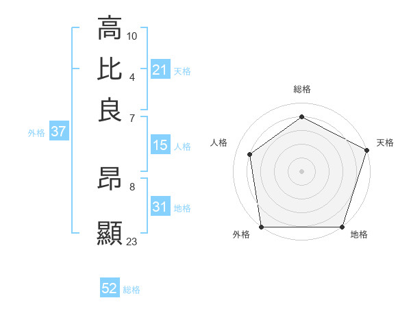 高比良 昂顯さんを姓名の画数から五運を鑑定