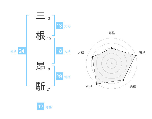 三根 昂駈さんを姓名の画数から五運を鑑定