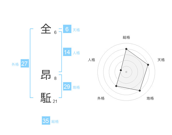 全 昂駈さんの総格は35画の4点!