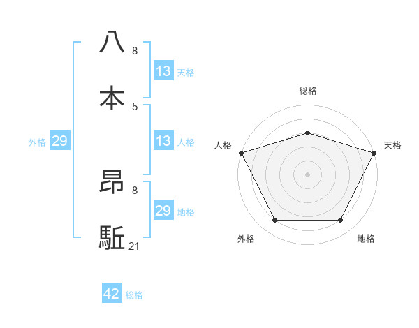 八本 昂駈さんの外格は29画の4点!