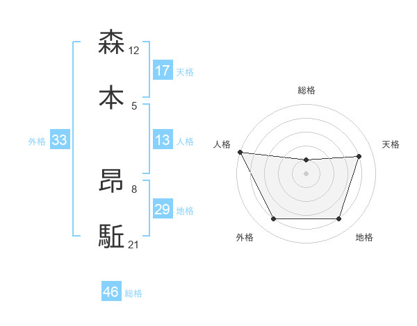 森本 昂駈さんを姓名の画数から五運を鑑定