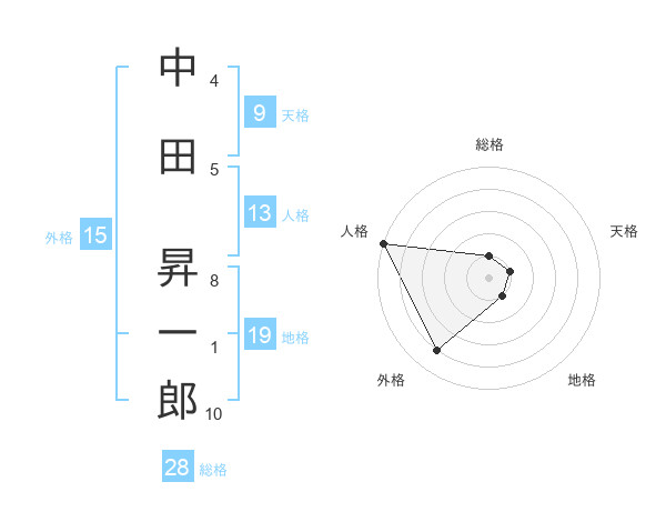 中田 昇一郎さんを姓名の画数から五運を鑑定