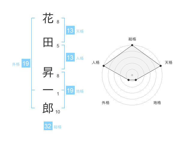 花田 昇一郎さんの天格は13画の5点!