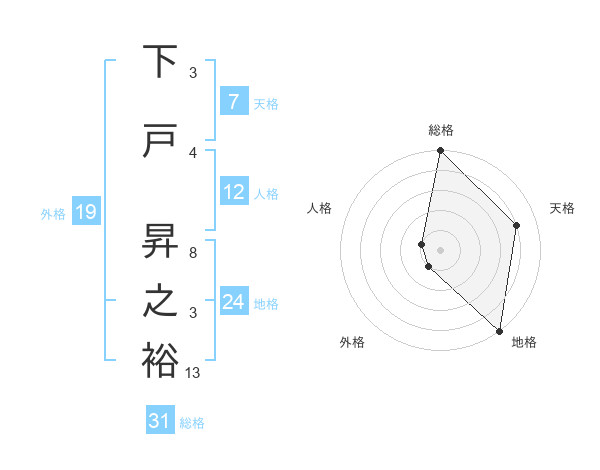 下戸 昇之裕さんを姓名の画数から五運を鑑定