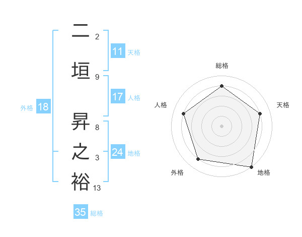 二垣 昇之裕さんの総格は35画の4点!