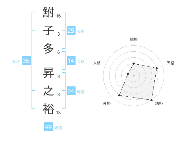鮒子多 昇之裕さんを姓名の画数から五運を鑑定