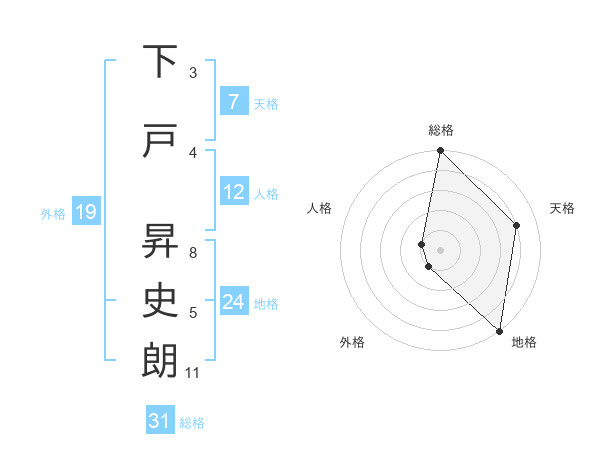 下戸 昇史朗さんを姓名の画数から五運を鑑定