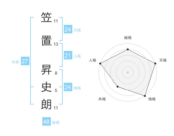 笠置 昇史朗さんを姓名の画数から五運を鑑定