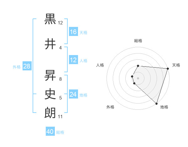 黒井 昇史朗さんの天格は16画の5点!