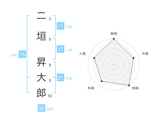 二垣 昇大郎さんを姓名の画数から五運を鑑定