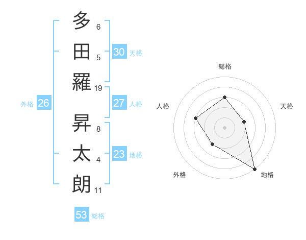 多田羅 昇太朗さんの総格は53画の3点!
