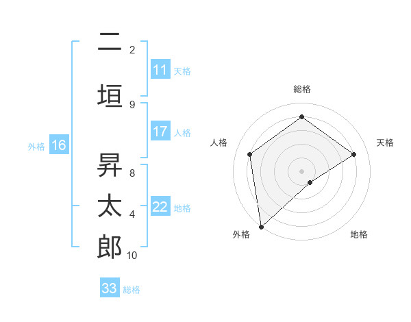 二垣 昇太郎さんの総格は33画の4点!