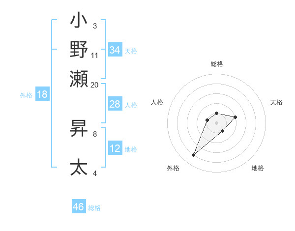 小野瀬 昇太さんを姓名の画数から五運を鑑定