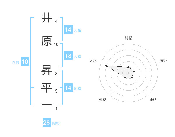井原 昇平一さんを姓名の画数から五運を鑑定
