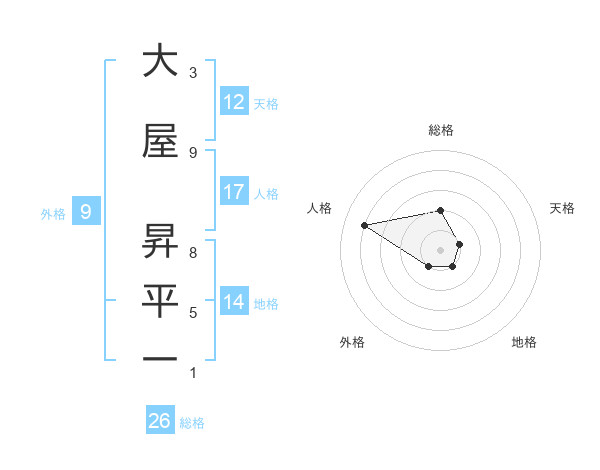 大屋 昇平一さんの総格は26画の2点!