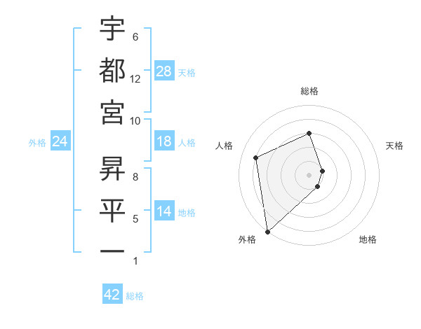 宇都宮 昇平一さんを姓名の画数から五運を鑑定