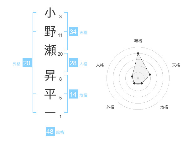 小野瀬 昇平一さんを姓名の画数から五運を鑑定