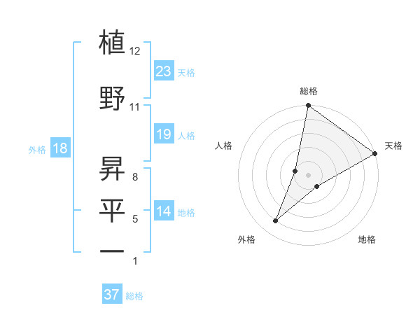植野 昇平一さんを姓名の画数から五運を鑑定