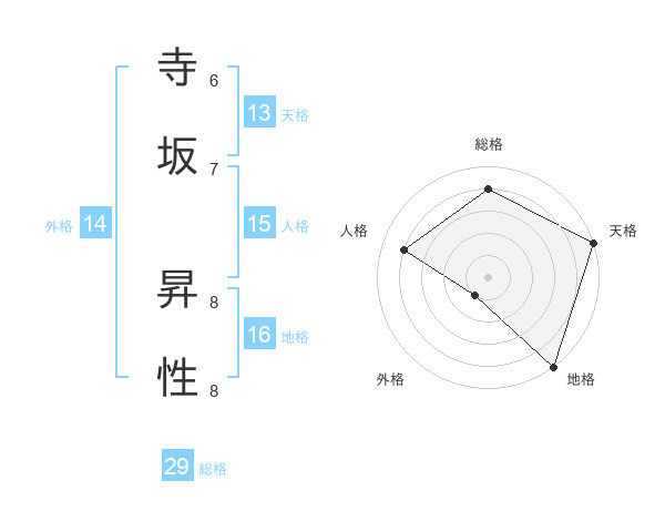 寺坂 昇性さんの総格は29画の4点!