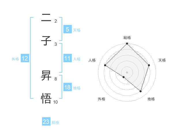 二子 昇悟さんを姓名の画数から五運を鑑定