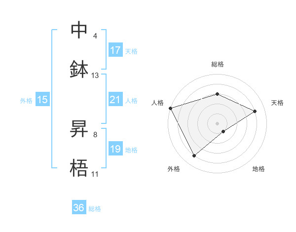 中鉢 昇梧さんの天格は17画の4点!