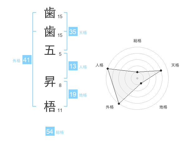 歯歯五 昇梧さんを姓名の画数から五運を鑑定
